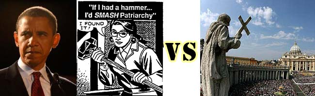 And if they go that far, what will happen if the Catholic clergy still refuses to go along with the government's dictates, forcing the closure of these institutions for lack of funds: that's almost one-third of America's hospitals and a huge number of our country's most prestigious institutions of higher learning? CATHOLICS COULD NOT HELP BUT SEE THIS AS A DECLARATION OF WAR AGAINST THEIR CHURCH - and while it's true that most Catholics embrace contraception and birth-control on a PERSONAL basis, the great majority of Catholics will not see things in these terms, but rather that Obama is making war on their church; moreover, great numbers of non-Catholics who avail themselves of the services of these institutions will be likewise enraged.